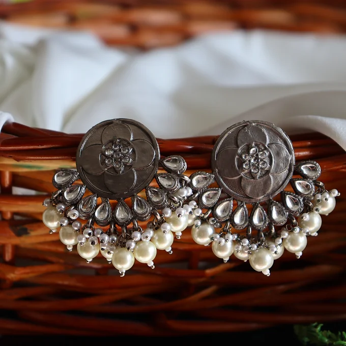 Mayrithi silverlookalike fusion with jadau kundan earrings