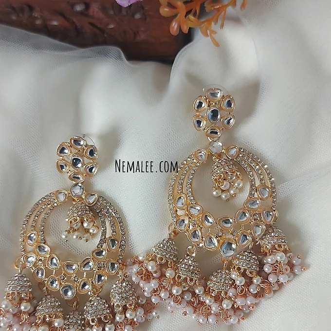 Home Earrings Chandbalis Naina-Ad and kundan premium rose gold finish statement earrings