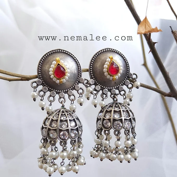 Home Earrings German silver Earrings Vismayi-Fusion ad and kundan jumkha