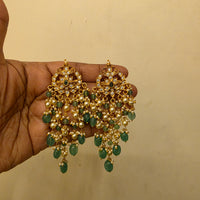 Cz and green stone jumkha in gold plating