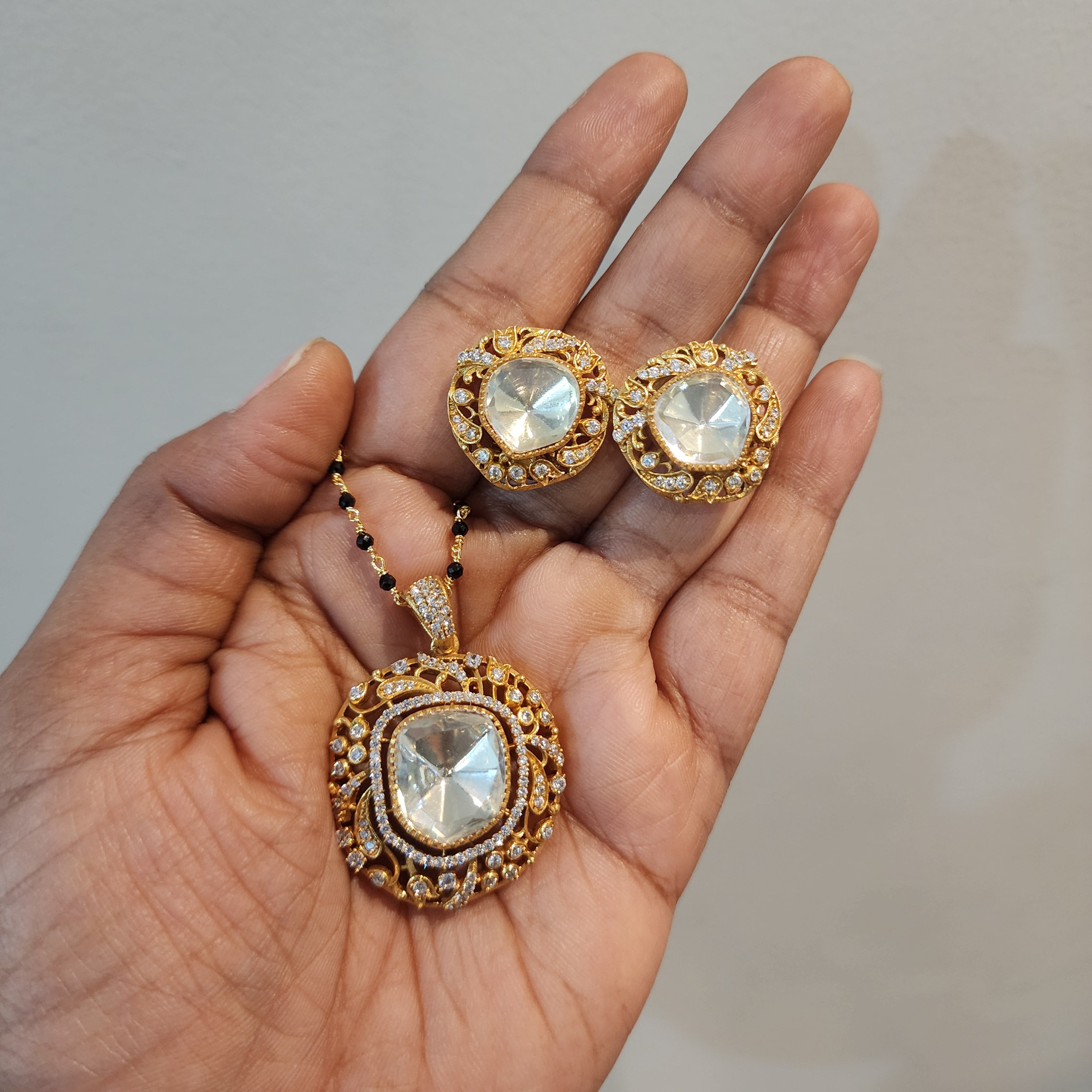 Polki pendant with earrings
