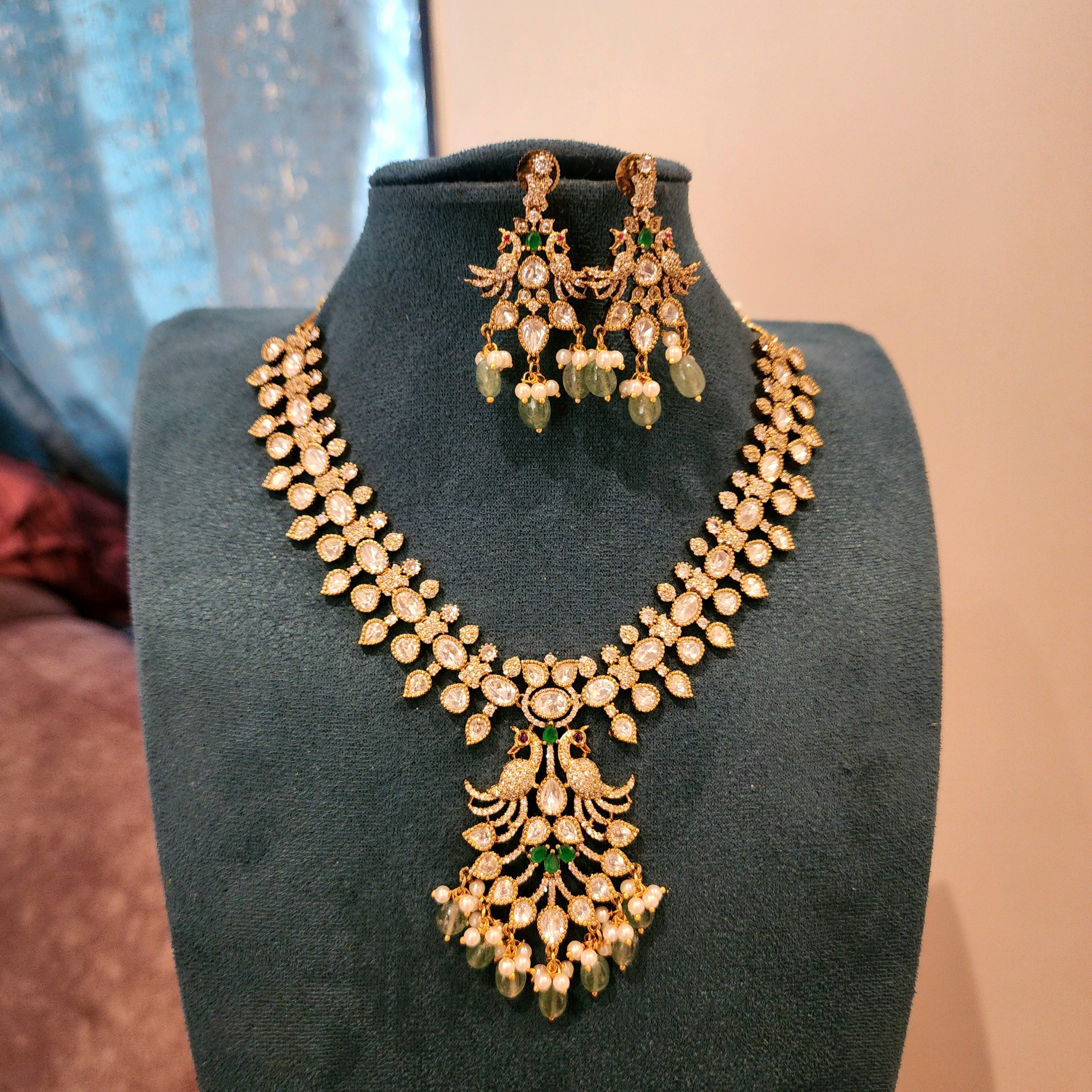 Peacock victorian plated moissanite and jadau jumkha
